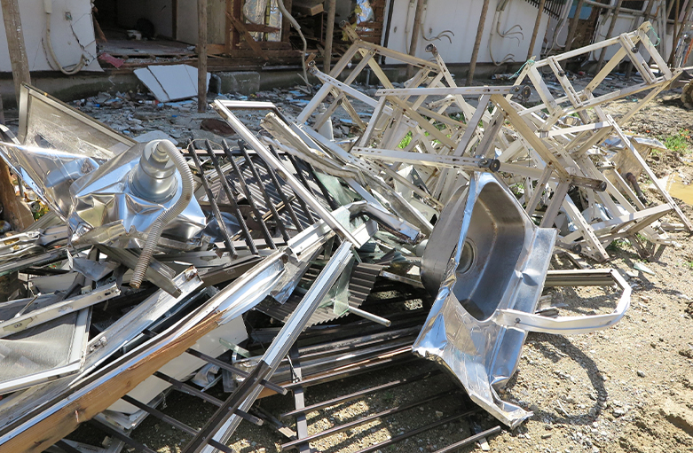 解体工事に伴って発生する不用品や廃材の回収業務も、私たちが一括して対応いたします。解体工事後には、家具や家電、内装材、金属、木材などさまざまな不用品が出ますが、これらを適切に分別し、リサイクル可能なものは資源として再利用できるように、環境への配慮を徹底しています。